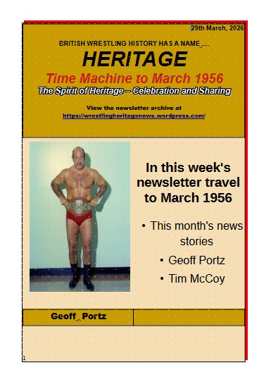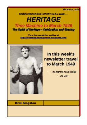 Every week Wrestling Heritage produces a newsletter with even more information and memories of British wrestling in years gone by. The newsletter is available to all members of the Wrestling Heritage website. Membership is free and easy. More memories, more background, more fun.