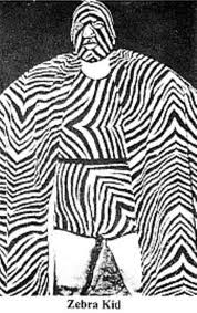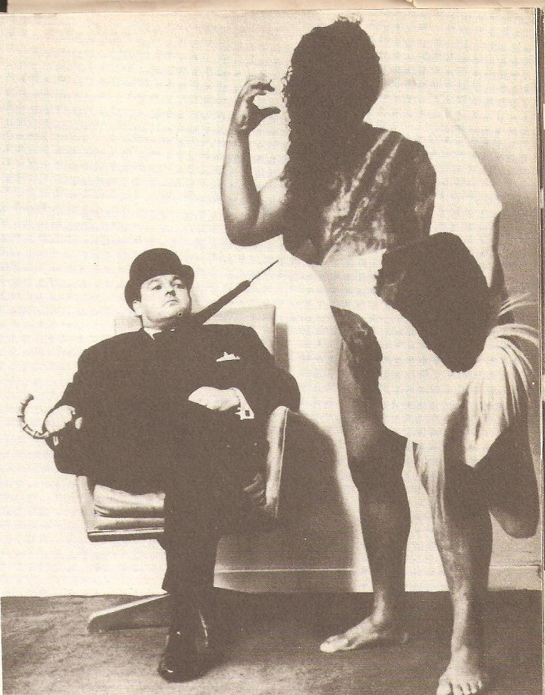 Cunning photography led us to believe The Wild Man of Borneo was much taller and generally bigger than he in fact was. The Society Boy (not The College Boy as erroneously stated elsewhere on the web) remains seated to enhance the spectacle. The tag pairing filled houses throughout the Paul Lincoln empire.
