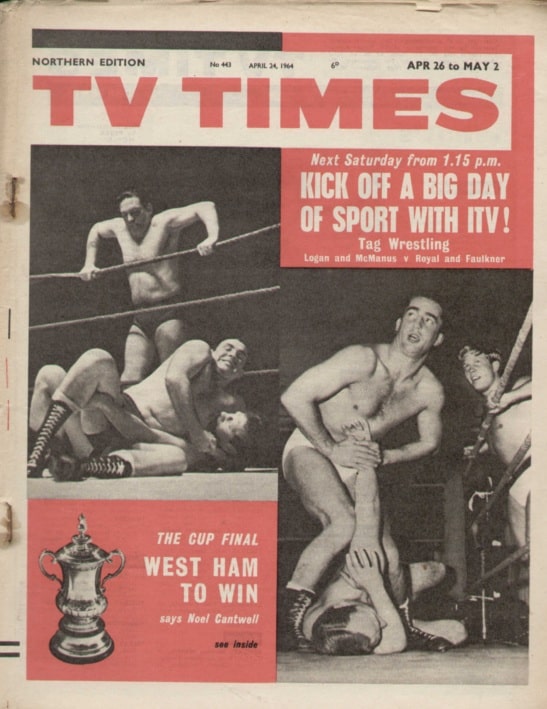 FA Cup Final Day in the 1960s was one of the few chances each year for soccer fans to see a live match screened . The day was huge with both channels showing live extended coverage. At the peak of all this in 1964, professional wrestling, officially the appetiser, stole the show. The TV Times featured it above the big match because they knew from previous years that the wrestling would outstrip the soccer ratings-wise.