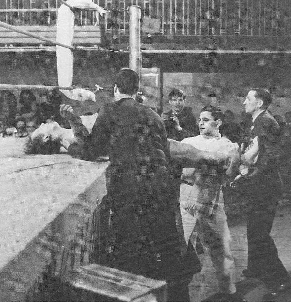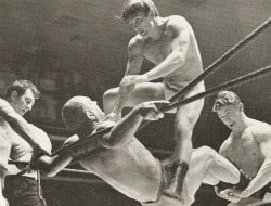Here we see the great Bernard Murray in one of his final bouts. It’s a rare shot showing him to have been an early clown prince of the ring.