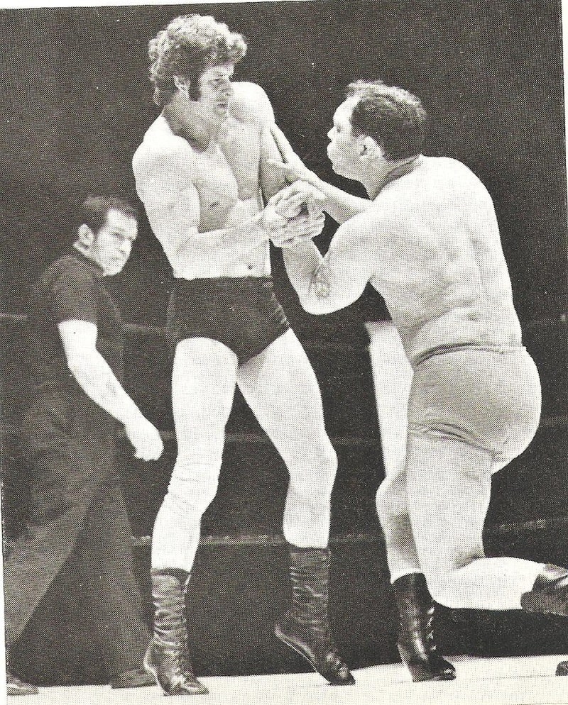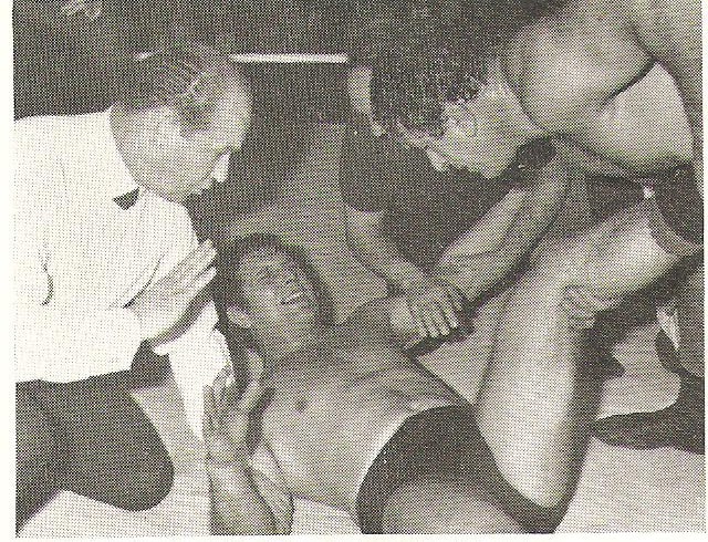 Perfect Harmony. Three pros typify the trust between each other in executing the blindside move, at the very heart of professional wrestling. Steve Viedor is masterfully helpless, referee Mancelli makes it look like he wants to intervene, and all the perpetrator needs to do is hold his ground and let the others react.