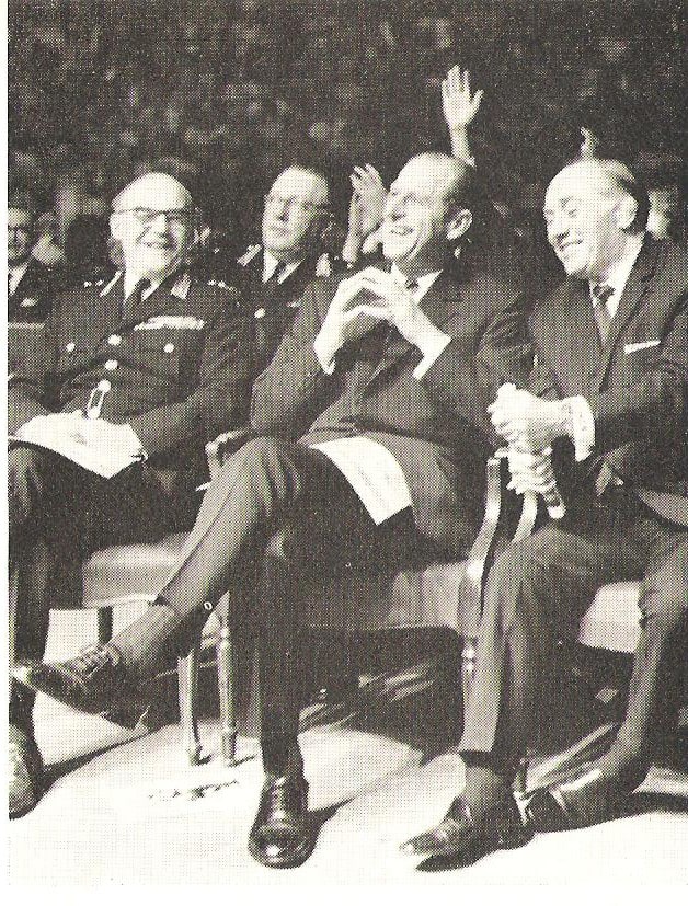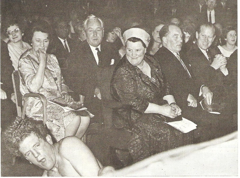 HRH The Duke of Edinburgh’s second night out at his local wrestling venue, in 1968. Stories of his wife practising wrestling moves are well recorded, and many members of the Royal family have shown similar enthusiasm for professional wrestling down the years. Promoter Jackie Dale ensures things go with a bang