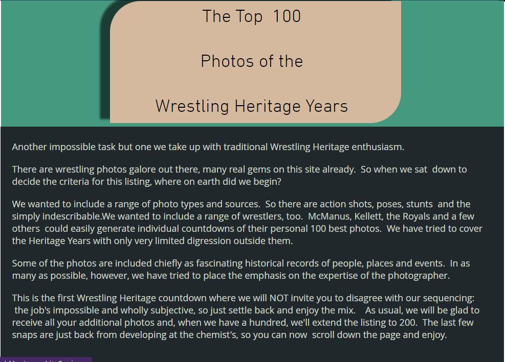 Wrestling Heritage welcomes memories, further information and corrections.