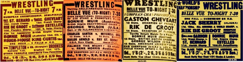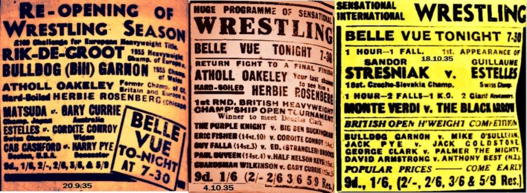 Well, if an extra element was needed to push wrestling on, I am impressed with how 1935 was handled. This took things to the next level. After the closure for the circus, wrestling hit the ground running with a season featuring a European Championship. On that very first night six matches and twelve contestants. Fortnightly wrestling and the next bill, round one part two, another 12 contenders.