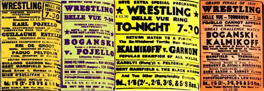 No Sherry, so Kath Look throws the dice again and comes up with building it all round Boganski, getting in Pojello and the use of Kalmikoff, reported to be 24 stones, what a monster. Garnon is in the mix with a grudge with Kalmikoff as well. Note when Boganski fights Pojello there is a spurious claim that not only was he the European Champ, but also The British Champ. An advertising mistake, I would have thought.