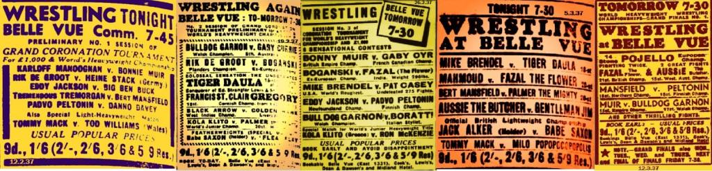 After Friday the 12th March, suddenly there had to be five nights of wrestling the next week to get this Tournament over with. As best as I can see Belle Vue had a lot on it’s plate with Coronation Celebrations.