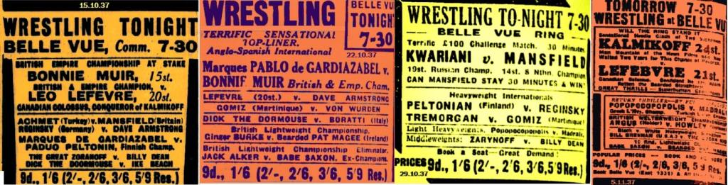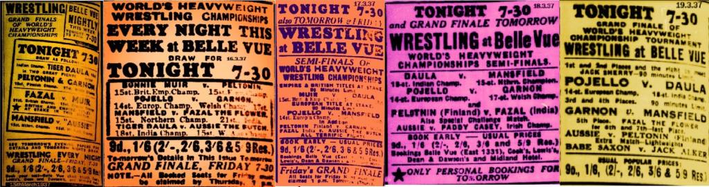 It’s kind of sensational to go to the wrestling on a Friday night and find it is on every night next week. I wonder how many fans dug deep into their wages to go? I don’t think I had ever seen anything done like this before in England and we are talking 1930’s here.