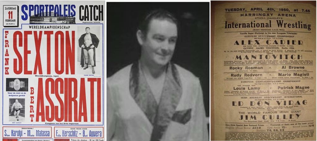 British heavyweight champion Bert Assirati popped over to Antwerp in February to challenge a World heavyweight Champion, Frank Sexton, wrestling a 60 minute draw.