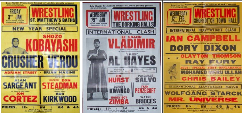 Returning to Dale Martin rings after a three year absence was Doctor Death, but in his short trip from Australia he faced only three opponents: Mick McManus, Steve Logan and Mike Marino. Whoever would have thought just 4 years earlier, with wrestling warfare in Southend and elsewhere as described in our 1965 review, that rival promoters McManus and Doctor Death would end up sharing a ring together before the decade was out.