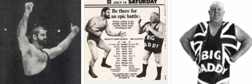More than Big Daddy vs Giant Haystacks, it was Big Daddy’s feud with Mighty John Quinn that really launched him as a national hero. Daddy’s mission was to take the bearded Canadian and shut his motor mouth for good. The former Kentucky Butcher of the WWWF in America, whom Orig Williams reported as having walked into Dale Martin’s Brixton Road office and stated his fee, was a shrewd operator – in America, antipatriotic villains were hated but they did not provoke utter shock and scandal.
