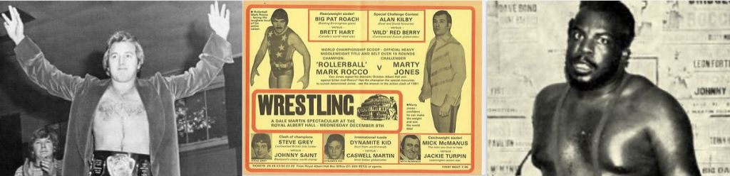 Another World title to be decided at Wembley Arena was the Mountevans World Heavy Middleweight title between Rollerball Rocco and Sammy Lee. However, there was to be a disappointment as Lee suffered a family bereavement and was forced to fly back to Japan and miss the big show. In about the nearest thing as far as anyone can make out to a defeat for the sensational Sammy, Rocco was declared the winner and Mountevans champion on a forfeit. It wasn’t really a satisfactoy way to win the title, however help for Rocco’s World championship credibility was to come when Joel de Fremery, the FFCP claimant, came over to the UK with “his” version of the title and duly jobbed it away to Rocco on TV from Southport at the end of the year. French wrestling was in a major downwards swing that year – the cancellation of TV coverage came hot on the heels of a reclassification of wrestling as entertainment by the French government which was not only embarrasing for the business across La Manche, but also landed promoters like Roger Delaporte with a huge tax bill. The title escaped all this and came to healthier climes in England. Now firmly entrenched as the Unified Euro version World Championship claimant, Rocco further solidified attention on his title with a fantastic defence against a visiting Dynamite Kid, ending in a double knockout near the end of the year (televised shortly after the new year.) And of course Rocco and Sammy Lee had not seen the last of each other as they would later battle it out under hoods as the original respective versions of Tiger Mask and Black Tiger, capturing the imaginations of the Japanese public and even taking their feud to the WWF and Madison Square Gardens in time.