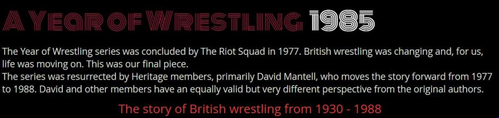 Wrestling Heritage welcomes memories, further information and corrections.
