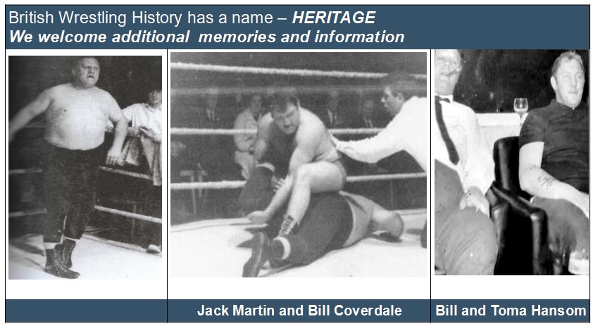 Eddie remembers …. “In the ring Bill could work and with such nimbleness for a 17 stone heavyweight. One night after a show there was a police sergeant on duty at the venue; he reckoned he could “have” Coverdale, what, with his experience of street thugs etc. Bill said ‘Right cocker, come on’ The copper lasted three seconds then hit the deck very hard: Bill let him come in, deflected his leading arm and elbowed him in the throat. Bout over! Not quite, Bill then swept his feet away, Judo style. Then he turned to us with a little grin on his face and said ‘No contest!’. Priceless moment.”