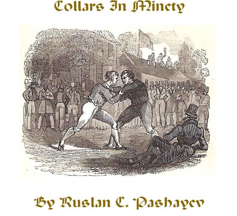 Considering the above said it is obvious that the eighteenth century English belt-wrestling wasn’t a typical type belt wrestling in which the belts are worn around the waists of competitors, but rather served wrestlers as an imitation of a “collar” to take holds by. Hence further in the text I will refer to this style of wrestling as a collar-belt wrestling. So to say the traditional English belt-wrestling was essentially a collar wrestling style. It is also fair to notice that the Parkyns most famous treatise on wrestling wasn’t really about the olde English pastime, the traditional “game of wrestling,” but it rather was a self-defence manual which explained certain wrestling holds and throws.