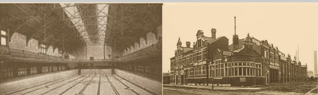 Nine Elms Baths had been built in 1901 and by the 1950’s was in a dangerous state of repairs. In winter when the baths was closed a sports event could house 1500 people. By 1956 ther balconies had to be pulled down and the place demolished in the 1970’s.