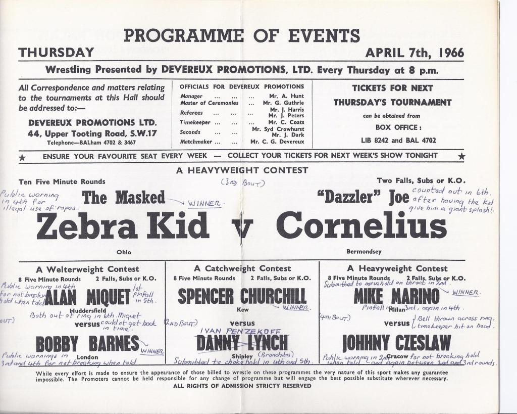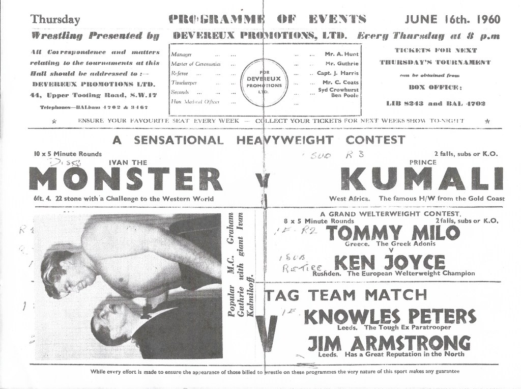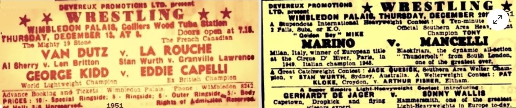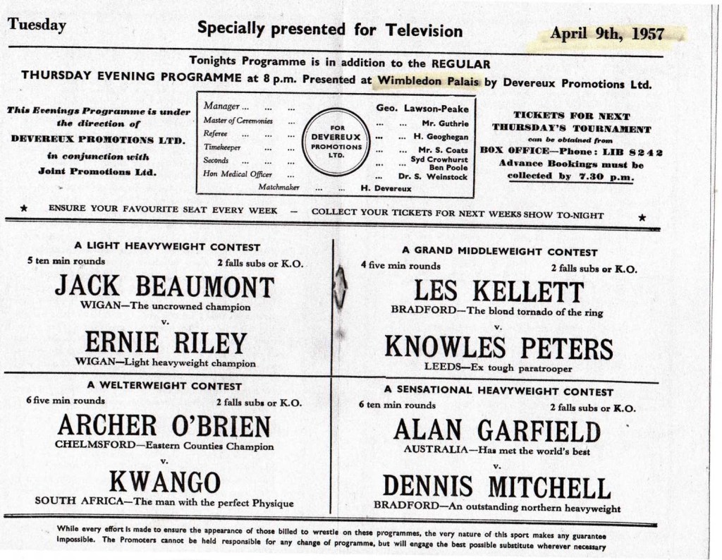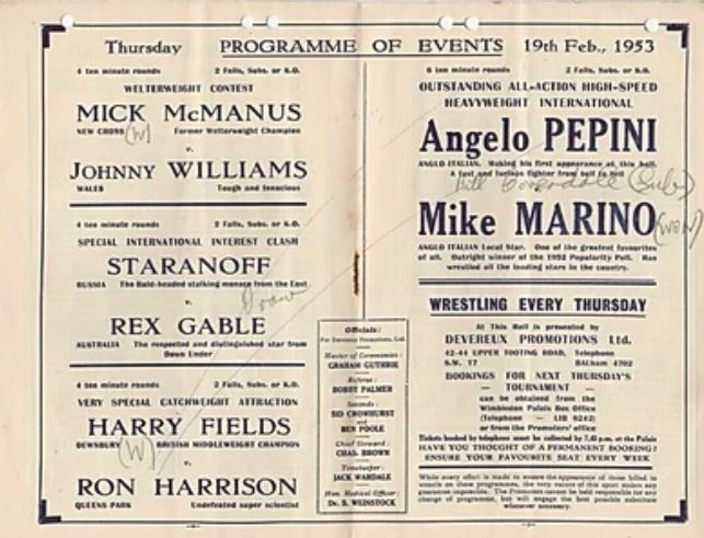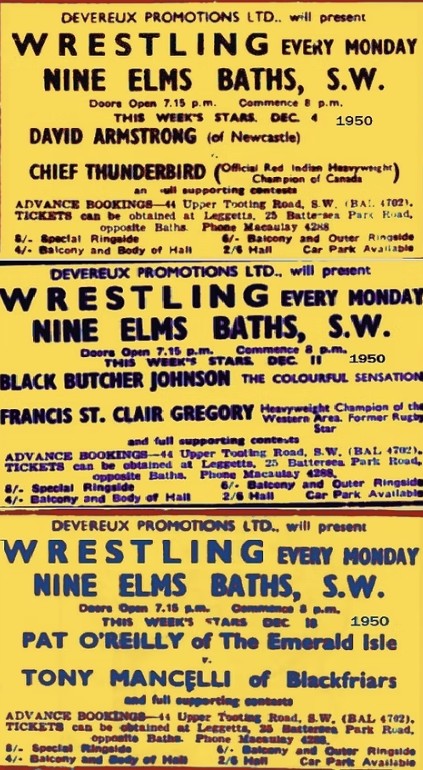 In 1948 I came across a Dale Martin bill and a report. Herbert Devereaux looked to be a well established pivot in the Dale Martin machine. Above working as timekeeper alongside promoters Johnny Dale and Les Martin.