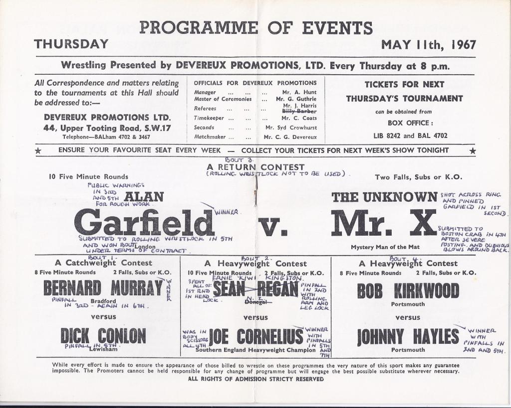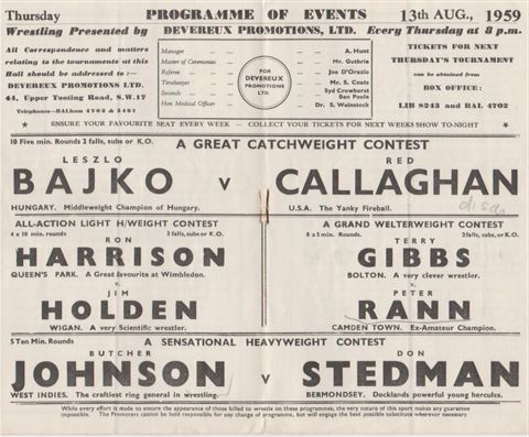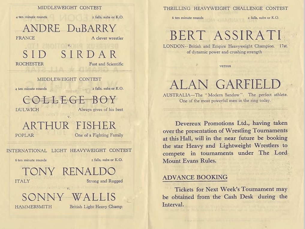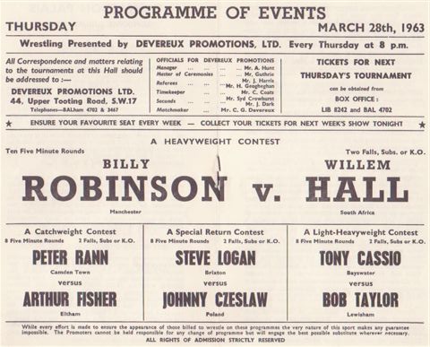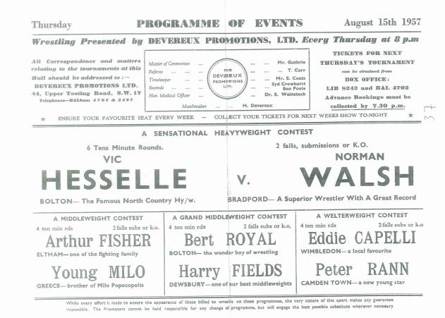 Wrestling Heritage welcomes memories, further information and corrections.