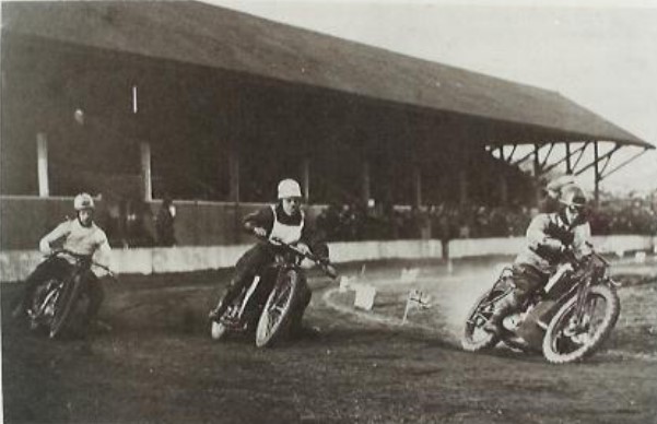 First on the scene was Aussie ex-boxer, circus performer and WW1 flying ace, Digger Pugh who was to be the man to introduce motorcycle speedway to UK. No one had seen anything like it. Teams of riders hurtled around an oval dirt or cinder track at breakneck speeds. “Broadsiding” into the corners one leg trailing along the ground, No Brakes – No Fear was the catchphrase of the speedway rider. Speedway fever gripped the nation, tracks and stadiums opened all across the country and soon every town of any size seemed to have a speedway team.