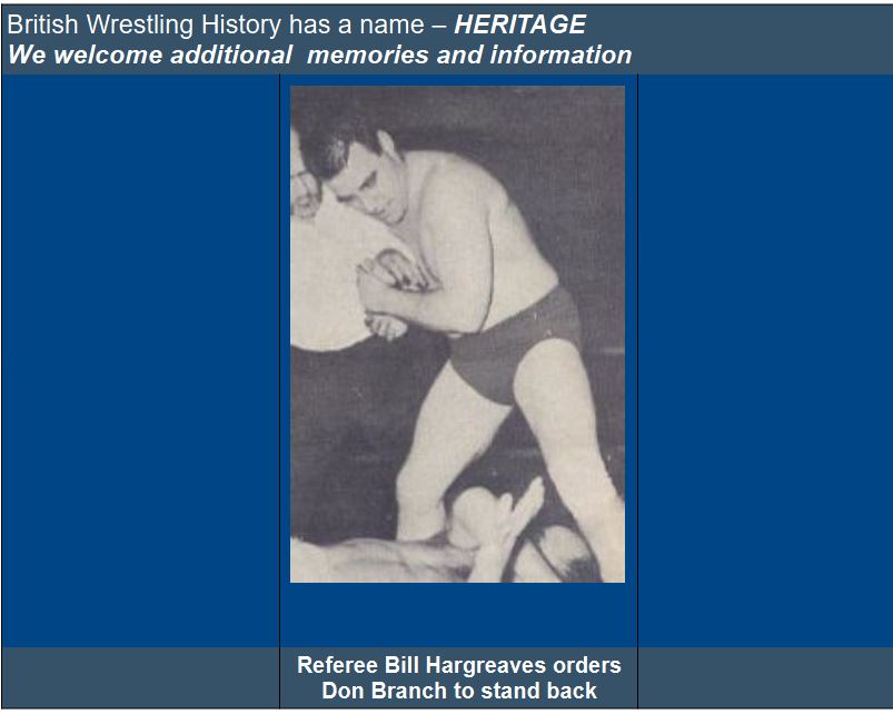 A professional wrestler for more than a decade, a man who worked regularly without reaching any dizzy heights Don Branch is remembered by British wrestling fans for a number of illustrious, and a couple of not so illustrious, occasions.