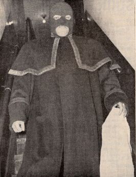 Doctor Death ceremoniously paraded down centre aisle behind the American flag – and yes I do believe he wore a dark purple face mask. He was as near to me in my aisle seat as my Dad was on my other side. The White Angel entered from a side door and across the front of the auditorium – what a contrast, being robed in white including boots and mask. He walked of course behind the Union flag.