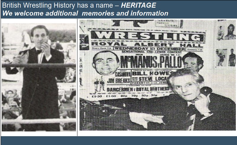 Harry was a slight figure of a man whom we never recall seeing on television, though he did appear in various photos in the sixties and seventies showing him clearly active in the Dale Martin offices in Brixton. What we especially appreciated about Harry’s work was the way he remained ringside throughout each bout. This may seem a peculiar compliment, but so many of his peers fled the scene whenever they could, clearly aware of the match outcome ahead. So we value his clear enthusiasm for the game in that respect, and also from the serious and informed choice of words he used in his introductions.
