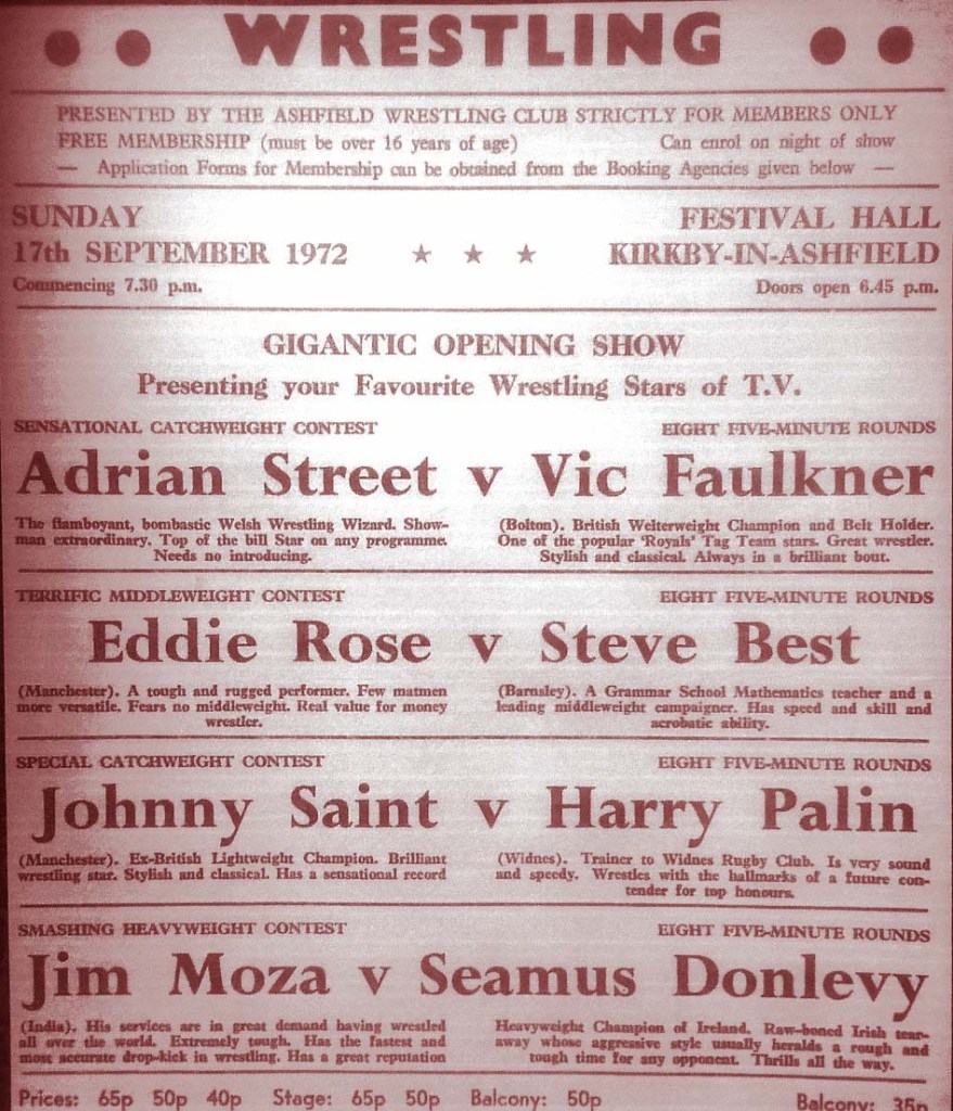 Grant gave me my first wrestling show as a professional versus Micky Coen, a rugged Irish wrestler who lived and worked in Manchester at the time and he carefully coached me, gave me advice on my first bookings during the next two years. Grant was a big West Indian, quietly spoken but full of humour and so easy to get along with.