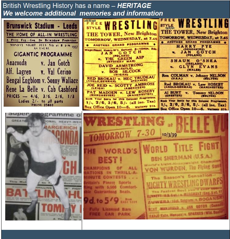 Despite living in London Jan Gotch worked the country. Jan Gotch learned his trade here and we have probably failed to spot what a great wrestler he became because his career stretched into the 1960’s mainly in the USA. He was not a shoot wrestler, much more of a showman type like Jack Pye or his brother Harry. His main gimmick was just rough action, to some extent acted of course.