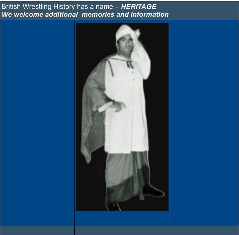 Born in 1937 in Lahore he came to Britain in his mid teens and wrestled in the UK during 1960’s and early 1970s. Trained by his father, a famous wrestler in his own right, the old campaigner Jack Atherton was also influential in Majid Ackra’s preparation for the professional arena. Majid joined the paid ranks towards the end of the 1950s. Following a debut against Vic Hessle he went on to compete against wrestlers ranging in style and weight from middleweight champion Clayton Thompson to heavyweight bruiser Johnny Yearsley. Based in Manchester he travelled extensively throughout the country and worked for all the Joint Promotion members.