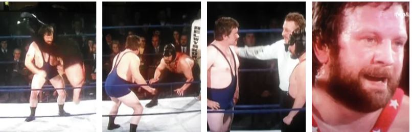 Just consider Kent Walton’s comment early in this bout: “Ginsberg is probably THE most disqualified wrestler in the country”. He proceeded in this bout to wrestle clean throughout, with handshakes all round, starting in Round One.