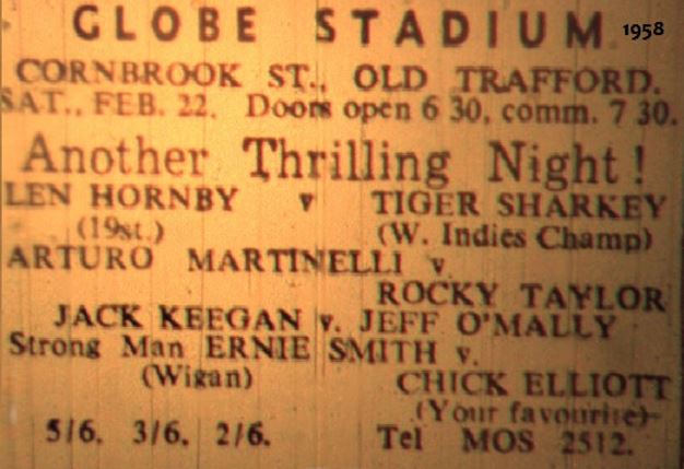 Less than half a mile down the same Stretford Road, over the Trafford Boundary in Old Trafford was a venue I have never heard of. The Globe Stadium. At first I thought of Ted Beresford’s Globe promotions, but the area was wrong. It turns out the that the Globe was a cinema.