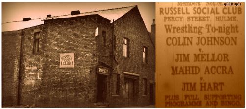 As we leave Deansgate at Castlefield you go first through Hulme, then Old Trafford which is part of Stretford. From an archiving point of view it was in Hulme that I gained a lot. I came across bills for The Russell Social Club, just off Stretford Road on Percy Street. The thing was, these were not Independents. I wish I could explain the exact workings of this venue, but I can’t. I will share with you what I know and maybe one of the old wrestlers will step forward and enlighten us.