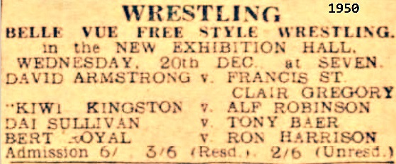 I wonder what the capacity of the Exhibition hall would have been? 1Eighteen shows were put on there whilst the Kings Hall was used for the Circus. In 1951 Belle Vue did over 100 Wrestling Shows due to this.