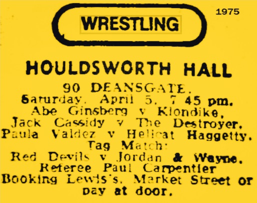 Graham Brook wrote on the Forum, “I am a huge fan of clowns and at Belle Vue I saw the great Coco and, when the Moscow State Circus paid a visit, the legendary Oleg Popov.” During the Belle Vue winter break Graham transferred his wrestling attention to The Houldsworth Hall in Deansgate, Manchester, where Jack Cassidy and Paul Carpentier would regularly promote names that did not appear at Belle Vue including Lord Bertie Topham, Klondyke Jake, Orig Williams, Pedro the Gypsy, and female wrestling.