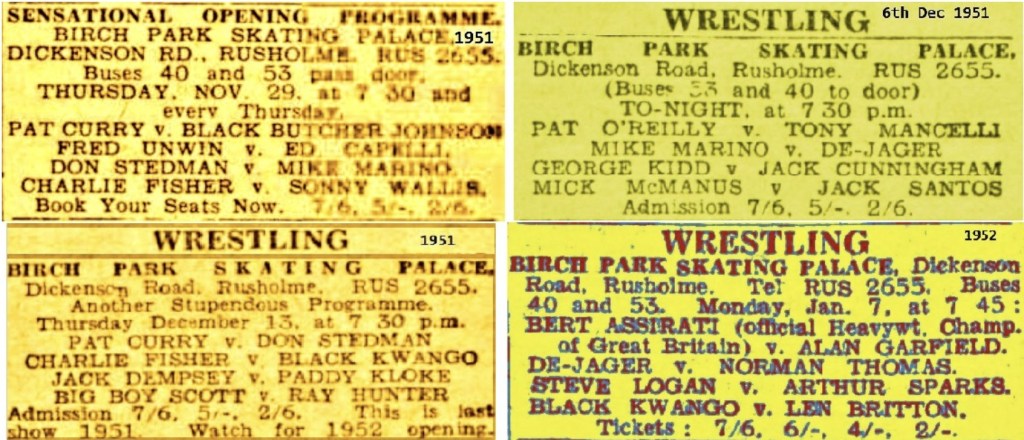 The Roller Rinks were often used in the old days, at Rusholme they even had a Roller Hockey team, but it does not have a big wrestling history. It looks a strange mix to me. For a small time at the end of 1951 they put some wrestling on, but who promoted?