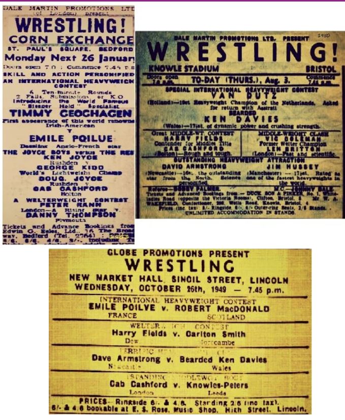 His date of birth was 5th May 1909, single man and a Wrestler (Heavy Worker). Scratching about the archive I then find to match this a bill where the promoter, Ted Beresford, advertised him from London. Sure, this was ten years later in 1949.