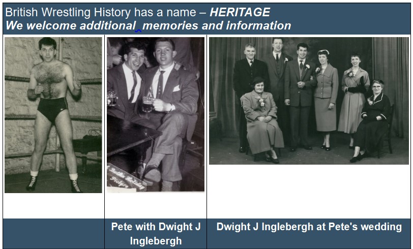 They all moved to The Junction Gym in 1956 and a year or so later Pete turned professional. Pete and his friend Sam Betts (Dwight J Ingleburgh) joined the Merchant Navy, based in Goole shovelling coal into the boilers. It was gruelling work but kept Pete in good condition to pursue his wrestling interests. Pete engaged in great matches with Stoker Brooks, Pedro the Gypsy and Butcher Goodman in those early days, working for the independent promoters.