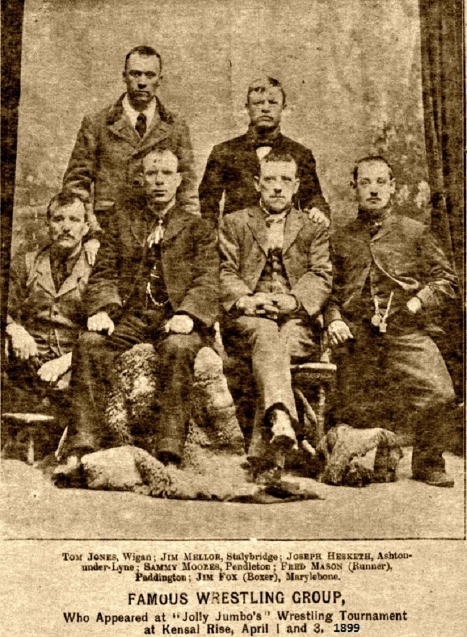 By 1882 Sam Moores can be found in the newspapers wrestling. He was living at William Street in Pendleton . Such was his stock that by 1890 he was often referee at some contests. In these far back times Wigan did not dominate Lancashire Wrestling.