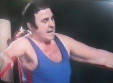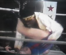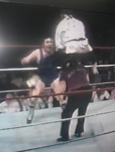 In spite of, or, more likely, precisely because of all this, the match worked beautifully to be very very enjoyable, even though commentator Walton was hard pressed to contribute usefully. The cruelty of the television close-up showed us the referee standing over the rolled up McManus, who had a whole foot fully through the ropes as Ward counted out the opening pin fall in Myers’ favour.