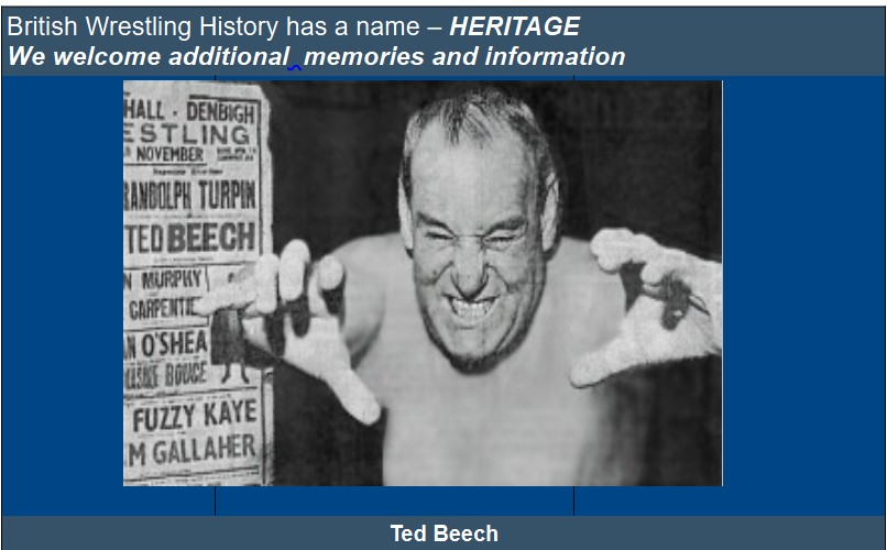 When he started wrestling professionally Billy adopted the name Ted Beech to differentiate himself from his wrestling uncle. He was also known as Babe and Butcher Beech. He began wrestling professionally during the Second World War, and we find him in January, 1945, fighting Doulas the Turk at Blackpool Tower.