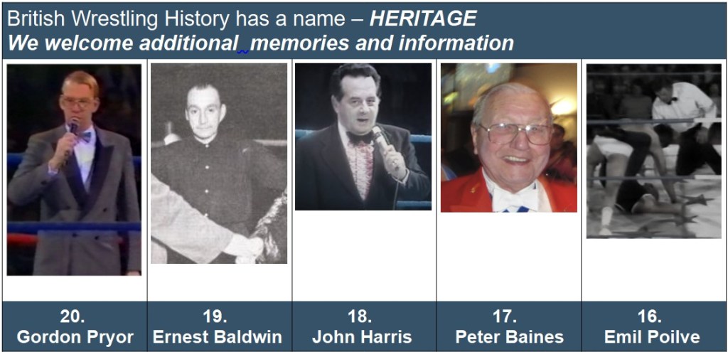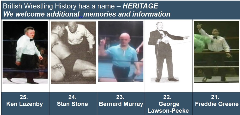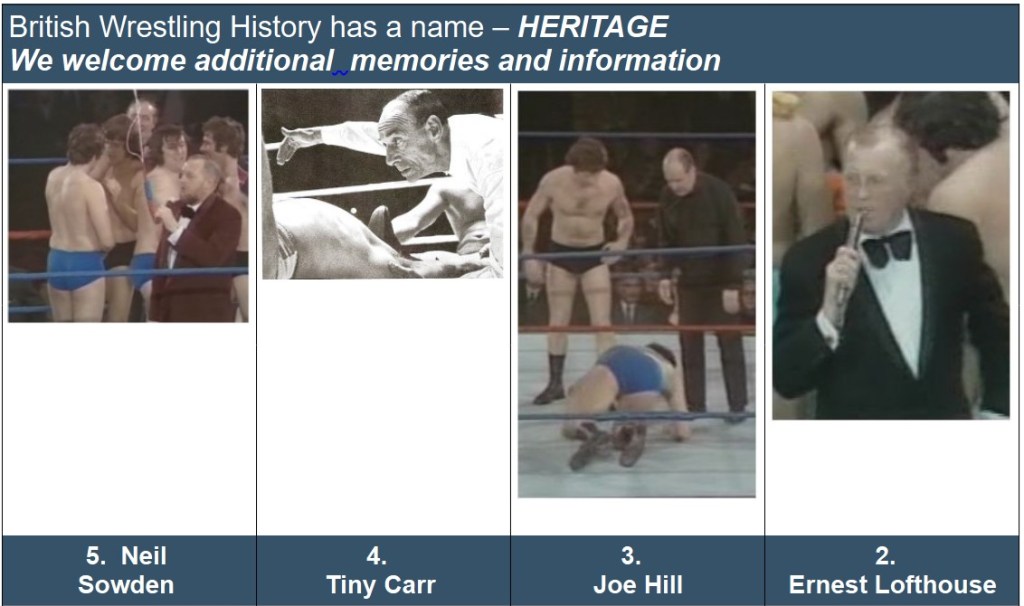 Wrestling Heritage welcomes memories, further information and corrections.