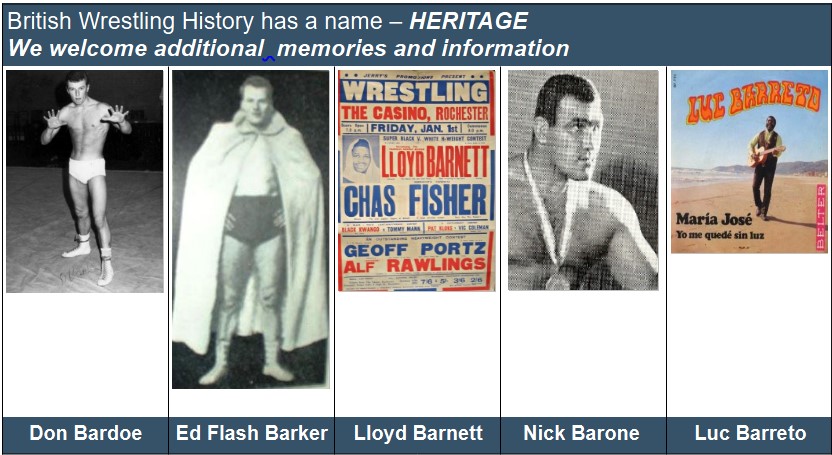 Former boxer Lloyd Barnett wrestled the big names around Britain and Europe during the 1950s. Opponents included Dave Armstrong, Don Mendoza, Francis St Clair Gregory, Karel Istaz and the rest. Jamaican born Lloyd’s boxing career had spanned six years, including losses to big names like Don Cockell and Ingemar Johansson. He retired from boxing in June, 1953.