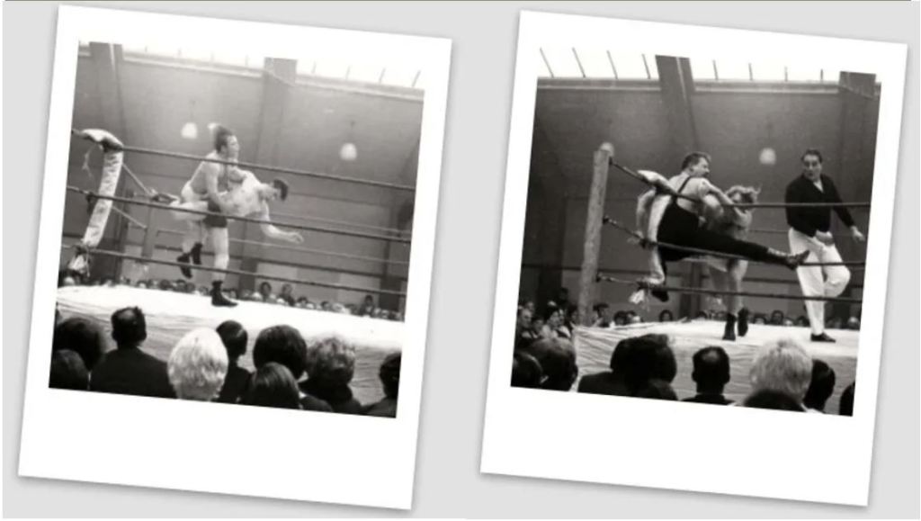 Regular Bromsgrove wrestling shows came to an end in 1968. The Garringtons shows suffered because of the move from the well attended Sunday afternoon Jack Atherton promotions, to the evening mid week Independent wrestling promoted by Barry Potter; which caused a fairly large drop in attendance, bringing the wrestling to an end. Potter also had the last show of the regular wrestling at the Bromsgrove Baths. I have tried to find out why the successful Garringtons Sunday shows made the bad decision to move to mid week, but too much time has passed, and I suppose it’s not really that important to have it written down anywhere. Maybe a new works entertainment committee had their reasons; maybe Jack Atherton decided to finish his wrestling shows for whatever reason, I don’t know. During 1967 and that final 1968 wrestling year, two shows that I remember, with help from old copies of the local newspaper, were one off specials, one successful and one a total failure. The successful show was,