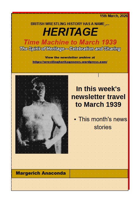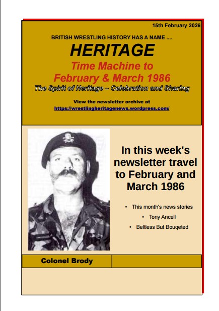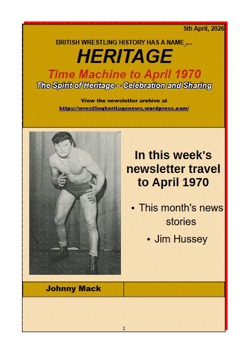 Every week Wrestling Heritage produces a newsletter with even more information and memories of British wrestling in years gone by. The newsletter is available to all members of the Wrestling Heritage website. Membership is free and easy. More memories, more background, more fun.
